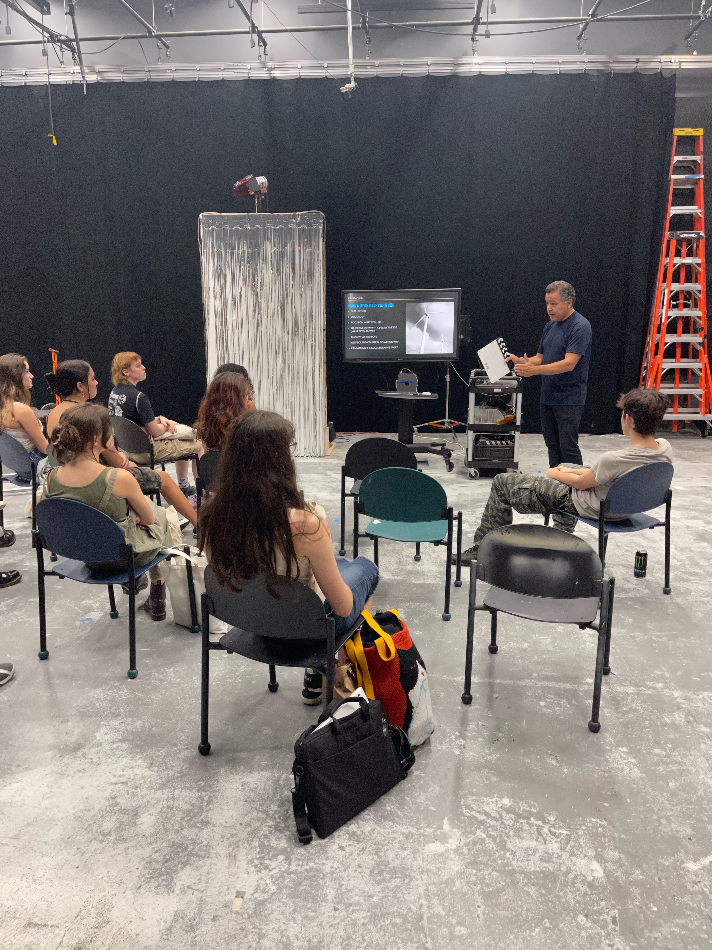 Be diligent with your note taking and it helps to come prepared with ideas for a film or screenplay. Don't worry if you miss something because they do provide informative handouts. Ask as many questions as possible! Before, during, and after class. Get everyone's contact information. Stay in touch.